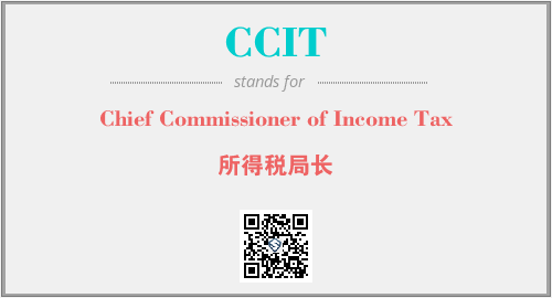 英文缩略词“CCIT”经常作为“Chief Commissioner of Income Tax”的英文缩写来使用,中文表示:“所得税局长”。本文将详细介绍英文缩写词CCIT所代表英文单词,其对应的中文拼音、详细解释以及在英语中的流行度。此外,还有关于缩略词CCIT的分类、应用领域及相关应用示例等。