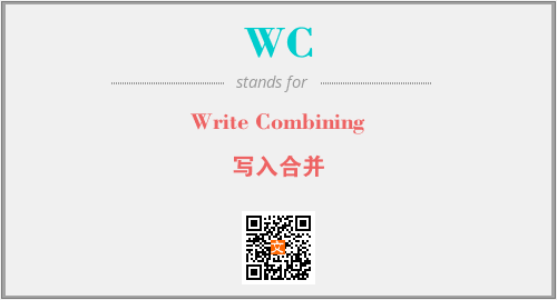 上述内容是“Write Combining”作为“WC”的缩写,解释为“写入合并”时的信息,以及英文缩略词WC所代表的英文单词,其对应的中文拼音、详细解释以及在英文中的流行度和相关分类、应用领域及应用示例等。