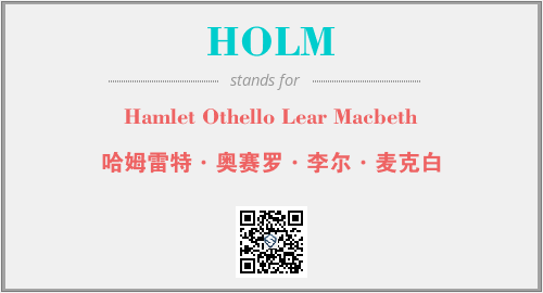 上述内容是“Hamlet Othello Lear Macbeth”作为“HOLM”的缩写,解释为“哈姆雷特·奥赛罗·李尔·麦克白”时的信息,以及英文缩略词HOLM所代表的英文单词,其对应的中文拼音、详细解释以及在英文中的流行度和相关分类、应用领域及应用示例等。
