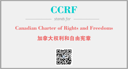 上述内容是“Canadian Charter of Rights and Freedoms”作为“CCRF”的缩写,解释为“加拿大权利和自由宪章”时的信息,以及英文缩略词CCRF所代表的英文单词,其对应的中文拼音、详细解释以及在英文中的流行度和相关分类、应用领域及应用示例等。