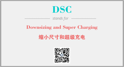 上述内容是“Downsizing and Super Charging”作为“DSC”的缩写,解释为“缩小尺寸和超级充电”时的信息,以及英文缩略词DSC所代表的英文单词,其对应的中文拼音、详细解释以及在英文中的流行度和相关分类、应用领域及应用示例等。