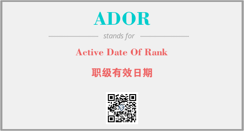 上述内容是“Active Date Of Rank”作为“ADOR”的缩写,解释为“职级有效日期”时的信息,以及英文缩略词ADOR所代表的英文单词,其对应的中文拼音、详细解释以及在英文中的流行度和相关分类、应用领域及应用示例等。