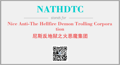 上述内容是“Nice Anti-The Hellfire Demon Trolling Corporation”作为“NATHDTC”的缩写,解释为“尼斯反地狱之火恶魔集团”时的信息,以及英文缩略词NATHDTC所代表的英文单词,其对应的中文拼音、详细解释以及在英文中的流行度和相关分类、应用领域及应用示例等。
