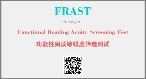 以上为Functional Reading Acuity Screening Test英文缩略词FRAST的中文解释,以及该英文缩写在英语的流行度、分类和应用领域方面的信息。