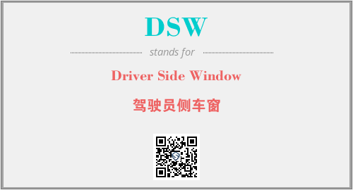 英文缩略词“DSW”经常作为“Driver Side Window”的英文缩写来使用,中文表示:“驾驶员侧车窗”。本文将详细介绍英文缩写词DSW所代表英文单词,其对应的中文拼音、详细解释以及在英语中的流行度。此外,还有关于缩略词DSW的分类、应用领域及相关应用示例等。