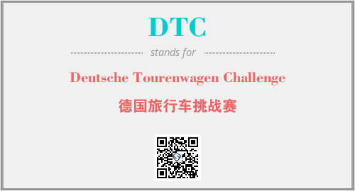 英文缩略词“DTC”经常作为“Deutsche Tourenwagen Challenge”的英文缩写来使用,中文表示:“德国旅行车挑战赛”。本文将详细介绍英文缩写词DTC所代表英文单词,其对应的中文拼音、详细解释以及在英语中的流行度。此外,还有关于缩略词DTC的分类、应用领域及相关应用示例等。