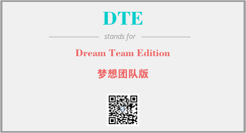 英文缩略词“DTE”经常作为“Dream Team Edition”的英文缩写来使用,中文表示:“梦想团队版”。本文将详细介绍英文缩写词DTE所代表英文单词,其对应的中文拼音、详细解释以及在英语中的流行度。此外,还有关于缩略词DTE的分类、应用领域及相关应用示例等。
