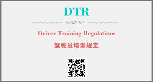 上述内容是“Driver Training Regulations”作为“DTR”的缩写,解释为“驾驶员培训规定”时的信息,以及英文缩略词DTR所代表的英文单词,其对应的中文拼音、详细解释以及在英文中的流行度和相关分类、应用领域及应用示例等。
