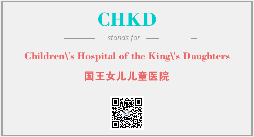 以上为Children\'s Hospital of the King\'s Daughters英文缩略词CHKD的中文解释,以及该英文缩写在英语的流行度、分类和应用领域方面的信息。