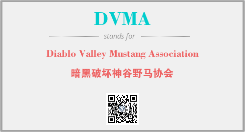 上述内容是“Diablo Valley Mustang Association”作为“DVMA”的缩写,解释为“暗黑破坏神谷野马协会”时的信息,以及英文缩略词DVMA所代表的英文单词,其对应的中文拼音、详细解释以及在英文中的流行度和相关分类、应用领域及应用示例等。