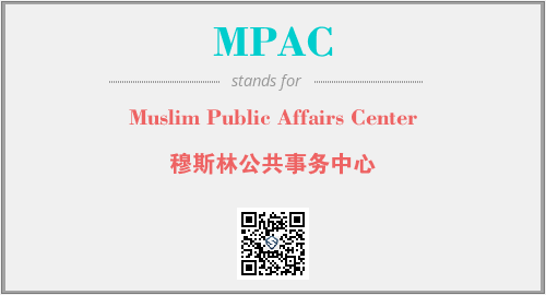 上述内容是“Muslim Public Affairs Center”作为“MPAC”的缩写,解释为“穆斯林公共事务中心”时的信息,以及英文缩略词MPAC所代表的英文单词,其对应的中文拼音、详细解释以及在英文中的流行度和相关分类、应用领域及应用示例等。