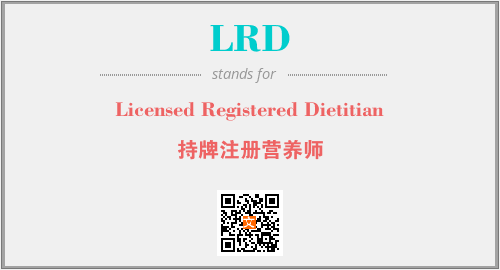 上述内容是“Licensed Registered Dietitian”作为“LRD”的缩写,解释为“持牌注册营养师”时的信息,以及英文缩略词LRD所代表的英文单词,其对应的中文拼音、详细解释以及在英文中的流行度和相关分类、应用领域及应用示例等。