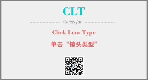 上述内容是“Click Lens Type”作为“CLT”的缩写,解释为“单击“镜头类型””时的信息,以及英文缩略词CLT所代表的英文单词,其对应的中文拼音、详细解释以及在英文中的流行度和相关分类、应用领域及应用示例等。