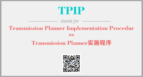 英文缩略词“TPIP”经常作为“Transmission Planner Implementation Procedures”的英文缩写来使用,中文表示:“Transmission Planner实施程序”。本文将详细介绍英文缩写词TPIP所代表英文单词,其对应的中文拼音、详细解释以及在英语中的流行度。此外,还有关于缩略词TPIP的分类、应用领域及相关应用示例等。