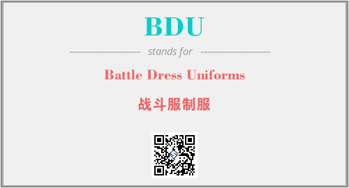 英文缩略词“BDU”经常作为“Battle Dress Uniforms”的英文缩写来使用,中文表示:“战斗服制服”。本文将详细介绍英文缩写词BDU所代表英文单词,其对应的中文拼音、详细解释以及在英语中的流行度。此外,还有关于缩略词BDU的分类、应用领域及相关应用示例等。