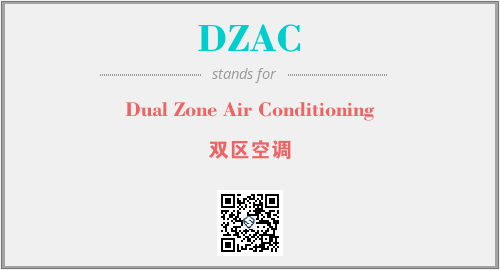 英文缩略词“DZAC”经常作为“Dual Zone Air Conditioning”的英文缩写来使用,中文表示:“双区空调”。本文将详细介绍英文缩写词DZAC所代表英文单词,其对应的中文拼音、详细解释以及在英语中的流行度。此外,还有关于缩略词DZAC的分类、应用领域及相关应用示例等。