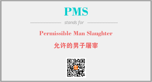 英文缩略词“PMS”经常作为“Permissible Man Slaughter”的英文缩写来使用,中文表示:“允许的男子屠宰”。本文将详细介绍英文缩写词PMS所代表英文单词,其对应的中文拼音、详细解释以及在英语中的流行度。此外,还有关于缩略词PMS的分类、应用领域及相关应用示例等。