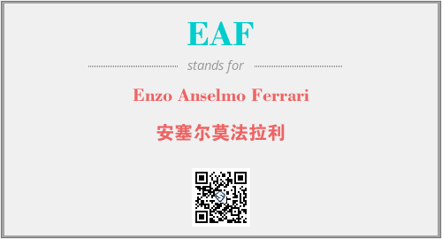 上述内容是“Enzo Anselmo Ferrari”作为“EAF”的缩写,解释为“安塞尔莫法拉利”时的信息,以及英文缩略词EAF所代表的英文单词,其对应的中文拼音、详细解释以及在英文中的流行度和相关分类、应用领域及应用示例等。