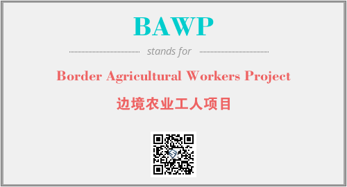 上述内容是“Border Agricultural Workers Project”作为“BAWP”的缩写,解释为“边境农业工人项目”时的信息,以及英文缩略词BAWP所代表的英文单词,其对应的中文拼音、详细解释以及在英文中的流行度和相关分类、应用领域及应用示例等。