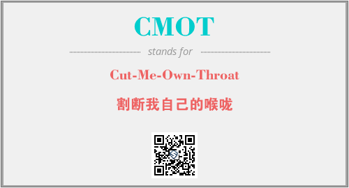 以上为Cut-Me-Own-Throat英文缩略词CMOT的中文解释,以及该英文缩写在英语的流行度、分类和应用领域方面的信息。
