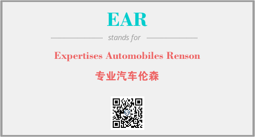 上述内容是“Expertises Automobiles Renson”作为“EAR”的缩写,解释为“专业汽车伦森”时的信息,以及英文缩略词EAR所代表的英文单词,其对应的中文拼音、详细解释以及在英文中的流行度和相关分类、应用领域及应用示例等。