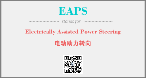 英文缩略词“EAPS”经常作为“Electrically Assisted Power Steering”的英文缩写来使用,中文表示:“电动助力转向”。本文将详细介绍英文缩写词EAPS所代表英文单词,其对应的中文拼音、详细解释以及在英语中的流行度。此外,还有关于缩略词EAPS的分类、应用领域及相关应用示例等。