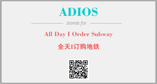 以上为All Day I Order Subway英文缩略词ADIOS的中文解释,以及该英文缩写在英语的流行度、分类和应用领域方面的信息。
