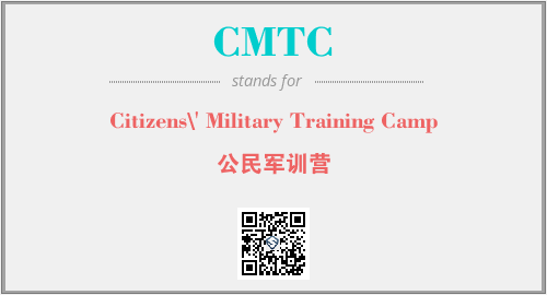 上述内容是“Citizens\' Military Training Camp”作为“CMTC”的缩写,解释为“公民军训营”时的信息,以及英文缩略词CMTC所代表的英文单词,其对应的中文拼音、详细解释以及在英文中的流行度和相关分类、应用领域及应用示例等。