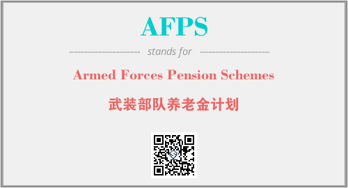 上述内容是“Armed Forces Pension Schemes”作为“AFPS”的缩写,解释为“武装部队养老金计划”时的信息,以及英文缩略词AFPS所代表的英文单词,其对应的中文拼音、详细解释以及在英文中的流行度和相关分类、应用领域及应用示例等。