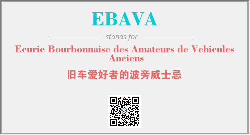 英文缩略词“EBAVA”经常作为“Ecurie Bourbonnaise des Amateurs de Vehicules Anciens”的英文缩写来使用,中文表示:“旧车爱好者的波旁威士忌”。本文将详细介绍英文缩写词EBAVA所代表英文单词,其对应的中文拼音、详细解释以及在英语中的流行度。此外,还有关于缩略词EBAVA的分类、应用领域及相关应用示例等。