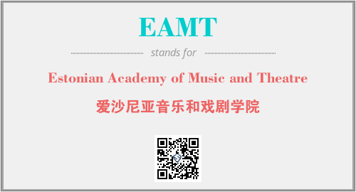 上述内容是“Estonian Academy of Music and Theatre”作为“EAMT”的缩写,解释为“爱沙尼亚音乐和戏剧学院”时的信息,以及英文缩略词EAMT所代表的英文单词,其对应的中文拼音、详细解释以及在英文中的流行度和相关分类、应用领域及应用示例等。