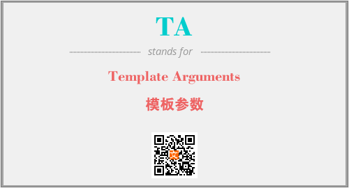 上述内容是“Template Arguments”作为“TA”的缩写,解释为“模板参数”时的信息,以及英文缩略词TA所代表的英文单词,其对应的中文拼音、详细解释以及在英文中的流行度和相关分类、应用领域及应用示例等。