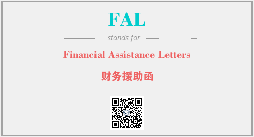 英文缩略词“FAL”经常作为“Financial Assistance Letters”的英文缩写来使用,中文表示:“财务援助函”。本文将详细介绍英文缩写词FAL所代表英文单词,其对应的中文拼音、详细解释以及在英语中的流行度。此外,还有关于缩略词FAL的分类、应用领域及相关应用示例等。
