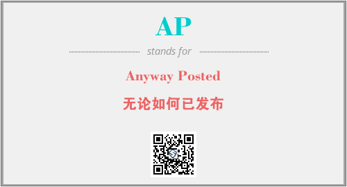 上述内容是“Anyway Posted”作为“AP”的缩写,解释为“无论如何已发布”时的信息,以及英文缩略词AP所代表的英文单词,其对应的中文拼音、详细解释以及在英文中的流行度和相关分类、应用领域及应用示例等。