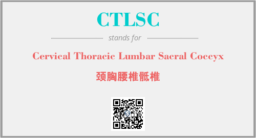 上述内容是“Cervical Thoracic Lumbar Sacral Coccyx”作为“CTLSC”的缩写,解释为“颈胸腰椎骶椎”时的信息,以及英文缩略词CTLSC所代表的英文单词,其对应的中文拼音、详细解释以及在英文中的流行度和相关分类、应用领域及应用示例等。