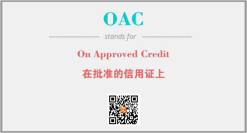 英文缩略词“OAC”经常作为“On Approved Credit”的英文缩写来使用,中文表示:“在批准的信用证上”。本文将详细介绍英文缩写词OAC所代表英文单词,其对应的中文拼音、详细解释以及在英语中的流行度。此外,还有关于缩略词OAC的分类、应用领域及相关应用示例等。