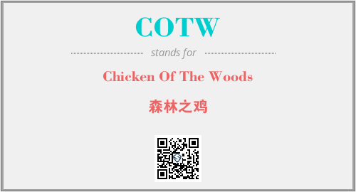 上述内容是“Chicken Of The Woods”作为“COTW”的缩写,解释为“森林之鸡”时的信息,以及英文缩略词COTW所代表的英文单词,其对应的中文拼音、详细解释以及在英文中的流行度和相关分类、应用领域及应用示例等。