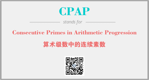 英文缩略词“CPAP”经常作为“Consecutive Primes in Arithmetic Progression”的英文缩写来使用,中文表示:“算术级数中的连续素数”。本文将详细介绍英文缩写词CPAP所代表英文单词,其对应的中文拼音、详细解释以及在英语中的流行度。此外,还有关于缩略词CPAP的分类、应用领域及相关应用示例等。