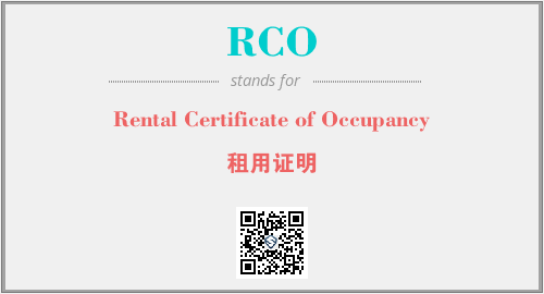 以上为Rental Certificate of Occupancy英文缩略词RCO的中文解释,以及该英文缩写在英语的流行度、分类和应用领域方面的信息。