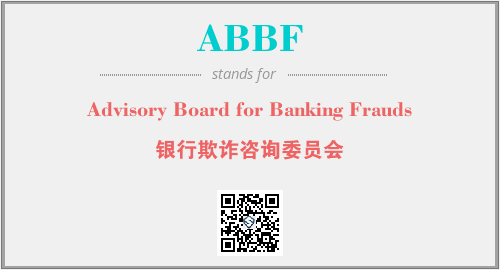 英文缩略词“ABBF”经常作为“Advisory Board for Banking Frauds”的英文缩写来使用,中文表示:“银行欺诈咨询委员会”。本文将详细介绍英文缩写词ABBF所代表英文单词,其对应的中文拼音、详细解释以及在英语中的流行度。此外,还有关于缩略词ABBF的分类、应用领域及相关应用示例等。