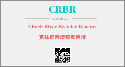 英文缩略词“CRBR”经常作为“Clinch River Breeder Reactor”的英文缩写来使用,中文表示:“克林奇河增殖反应堆”。本文将详细介绍英文缩写词CRBR所代表英文单词,其对应的中文拼音、详细解释以及在英语中的流行度。此外,还有关于缩略词CRBR的分类、应用领域及相关应用示例等。