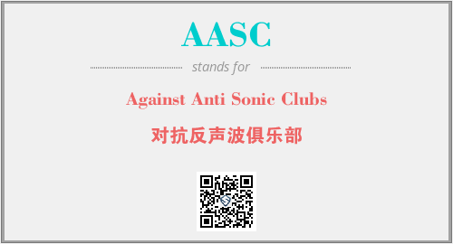 以上为Against Anti Sonic Clubs英文缩略词AASC的中文解释,以及该英文缩写在英语的流行度、分类和应用领域方面的信息。