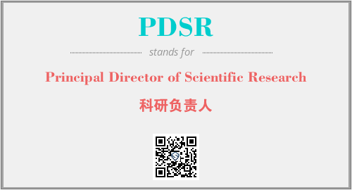 上述内容是“Principal Director of Scientific Research”作为“PDSR”的缩写,解释为“科研负责人”时的信息,以及英文缩略词PDSR所代表的英文单词,其对应的中文拼音、详细解释以及在英文中的流行度和相关分类、应用领域及应用示例等。