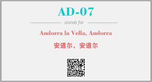 上述内容是“Andorra la Vella, Andorra”作为“AD-07”的缩写,解释为“安道尔,安道尔”时的信息,以及英文缩略词AD-07所代表的英文单词,其对应的中文拼音、详细解释以及在英文中的流行度和相关分类、应用领域及应用示例等。