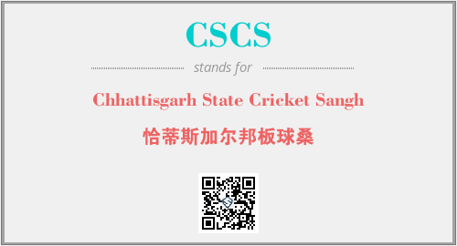 英文缩略词“CSCS”经常作为“Chhattisgarh State Cricket Sangh”的英文缩写来使用,中文表示:“恰蒂斯加尔邦板球桑”。本文将详细介绍英文缩写词CSCS所代表英文单词,其对应的中文拼音、详细解释以及在英语中的流行度。此外,还有关于缩略词CSCS的分类、应用领域及相关应用示例等。