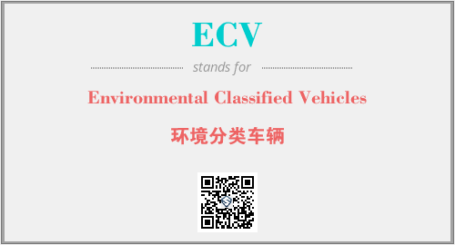 英文缩略词“ECV”经常作为“Environmental Classified Vehicles”的英文缩写来使用,中文表示:“环境分类车辆”。本文将详细介绍英文缩写词ECV所代表英文单词,其对应的中文拼音、详细解释以及在英语中的流行度。此外,还有关于缩略词ECV的分类、应用领域及相关应用示例等。