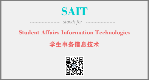 上述内容是“Student Affairs Information Technologies”作为“SAIT”的缩写,解释为“学生事务信息技术”时的信息,以及英文缩略词SAIT所代表的英文单词,其对应的中文拼音、详细解释以及在英文中的流行度和相关分类、应用领域及应用示例等。