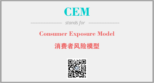 英文缩略词“CEM”经常作为“Consumer Exposure Model”的英文缩写来使用,中文表示:“消费者风险模型”。本文将详细介绍英文缩写词CEM所代表英文单词,其对应的中文拼音、详细解释以及在英语中的流行度。此外,还有关于缩略词CEM的分类、应用领域及相关应用示例等。