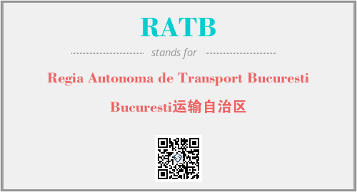 上述内容是“Regia Autonoma de Transport Bucuresti”作为“RATB”的缩写,解释为“Bucuresti运输自治区”时的信息,以及英文缩略词RATB所代表的英文单词,其对应的中文拼音、详细解释以及在英文中的流行度和相关分类、应用领域及应用示例等。