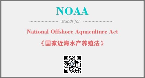 上述内容是“National Offshore Aquaculture Act”作为“NOAA”的缩写,解释为“《国家近海水产养殖法》”时的信息,以及英文缩略词NOAA所代表的英文单词,其对应的中文拼音、详细解释以及在英文中的流行度和相关分类、应用领域及应用示例等。